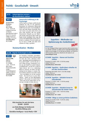 Kommunikation ∙ Medien Der Dipl. Pädagoge Helmut Lange ist professioneller Gedächtnistrai-