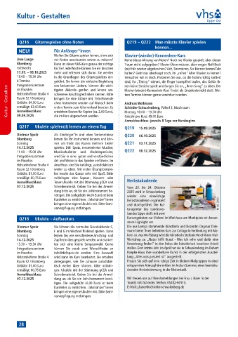 Q218 Ukulele – Aufbaukurs Kursangeboten zur Malerei im Werkhaus am Marktplatz ein beson-