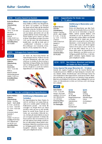 18.00 – 19.30 Uhr Aquarellkurse (z. B. Q232) vertiefen. Ferien-Special für junge Menschen (8 – 14 Jahre)