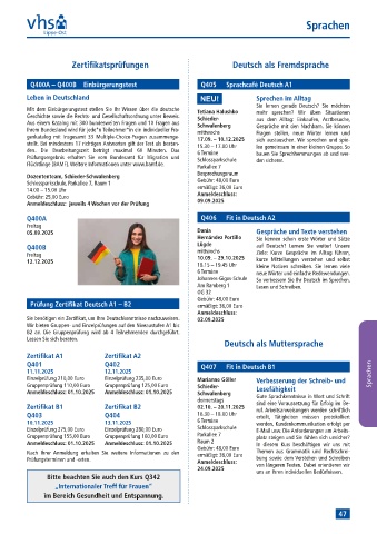Prüfungsterminen und -orten. Anmeldeschluss: bung sowie dem Verstehen und Schreiben