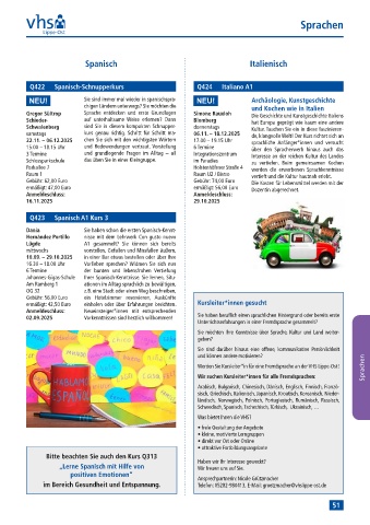 Q422 Spanisch-Schnupperkurs Q424 Italiano A1