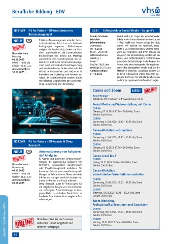 Berufliche Bildung – EDV 60 Bitte beachten Sie auch unsere Donnerstag, 09.10.2025, 16.00 – 18.15 Uhr, Zoom