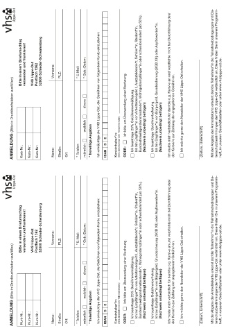 Kurs-Nr.: Kurs-Nr.: Kurs-Nr.: Name: Straße: Ort: * Telefon: * freiwillige Angaben D IBAN Kontoinhaber*in: (Datum, Unterschrift)